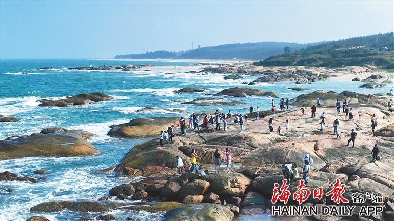 游客在海南環(huán)島旅游公路文昌段游玩。趙文淦 攝