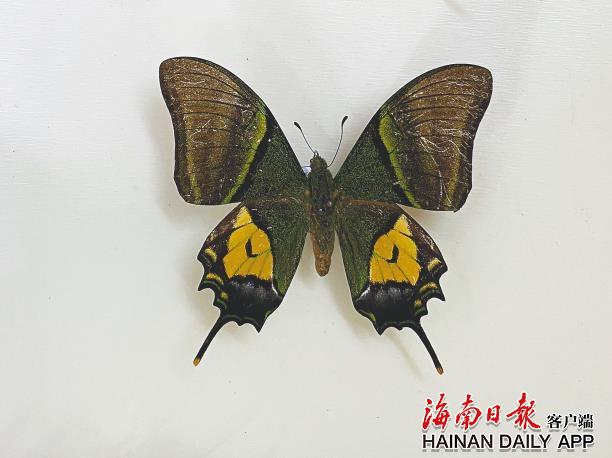 金斑喙鳳蝶(雄性)的標本。海南日報記者 陳耿 攝