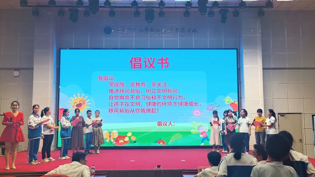現場,在家長代表的帶領下,全體觀眾共同發出倡議,號召全社會攜手努力,共同為未成年人營造文明和諧的社會環境,呵護未成年人健康成長。